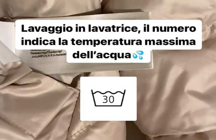 Altro simbolo che si può trovare sulle etichette degli indumenti è la vaschetta di acqua con il numero 30. In questo caso il messaggio è chiaro: lavaggio consentito in lavatrice ad un massimo di 30 gradi. Se a quello appena descritto compare una linea sotto la tinozza, allora significa che il lavaggio deve avvenire a velocità ridotta azionando quindi un programma per lana o delicati.